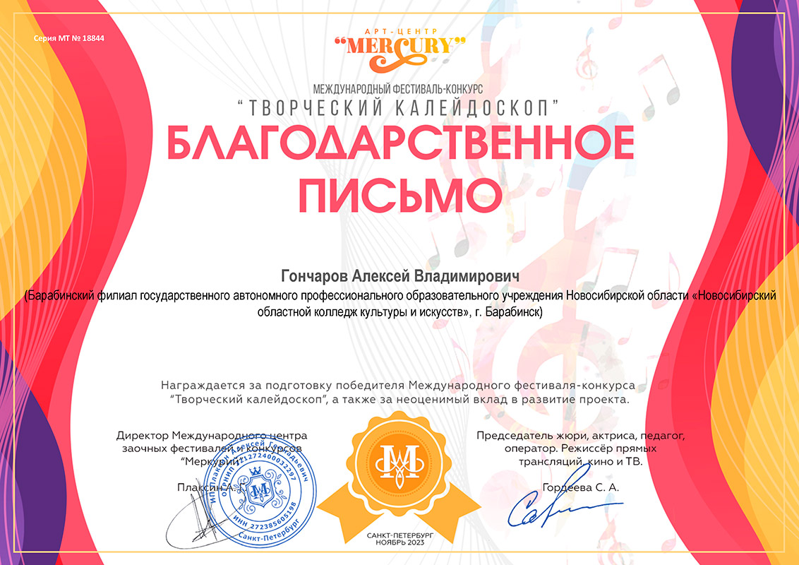 Обучающиеся принимают активное участие в разнообразных мероприятиях, включая исполнительские конкурсы и фестивали различного уровня. Преподавателями и студентами были получены следующие награды: