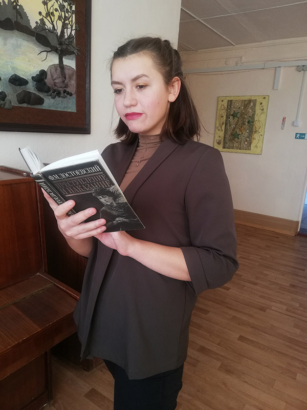 В течение дня проходила акция "Ваше любимое произведение Федора Михайловича!", благодаря которой выяснилось, что наиболее читаемое произведение Ф.М.Достоевского - "Преступление и наказание". Организованные студентами фотозона "Достоевский и его герои" и флешбук "Читаем Достоевского" позволили погрузиться в атмосферу произведений автора.