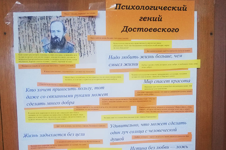 С 22 по 25 ноября в филиале прошла неделя предметно-цикловой комиссии "Общегуманитарные и социально-экономические дисциплины" под названием "Парад наук". Неделя была посвящена 200-летию со дня рождения Ф.М.Достоевского. Ежедневно обучающимся предоставлялась возможность оценить связь творчества писателя с различными науками.