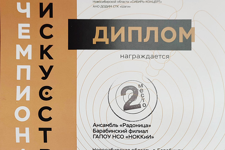 Специальность "Сольное и хоровое народное пение" (по виду: хоровое народное пение) 18-20 марта в г.Новосибирске приняли участие в VIII Всероссийском ЧЕМПИОНАТЕ ИСКУССТВ 2022г. Конкурсные испытания по направлению "Сила голоса" прошли 34 коллектива из разных регионов России.
