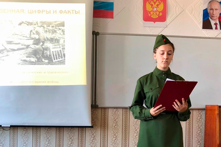 В рамках проведённого мероприятия мы все вместе вспомнили цифры и факты Победы в Великой Отечественной войне, талантливых полководцев этой войны. Почтили память миллионов жертв фашисткой агрессии против советского союза минутой молчания.