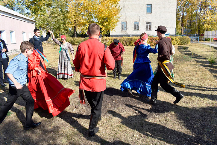 Студенты Барабинского филиала "НОККиИ" показали театрализованное представление "Деревенские посиделки" с элементами старинных традиций и обрядов. Гости праздника с удовольствием участвовали в увлекательных конкурсах, потешках, которые сменялись песнями и весёлыми плясками. Праздник продолжился на улице народными играми и заводными хороводами.