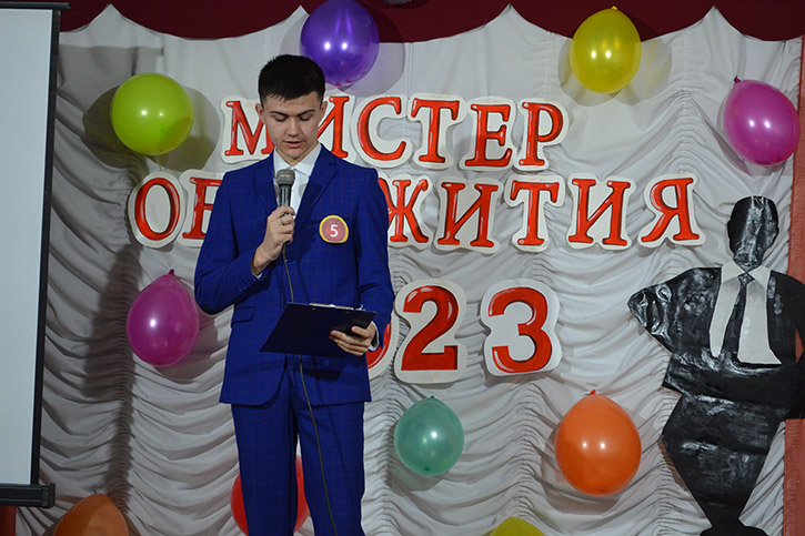 Мероприятие, организованное воспитателями Берилло Е.В. и Шкуриной И.Д., студенческим Советом общежития, стало доброй традицией в общежитии. Завоевать звание "Мистер общежития-2023", участникам необходимо было порадовать жюри собственным артистизмом в визитной карточке, проявить навыки импровизации в конкурсе "Давайте познакомимся", знанием военной подготовкой "По старшинству" и даже проявить себя в качестве танцора и "Лучшего снайпера".