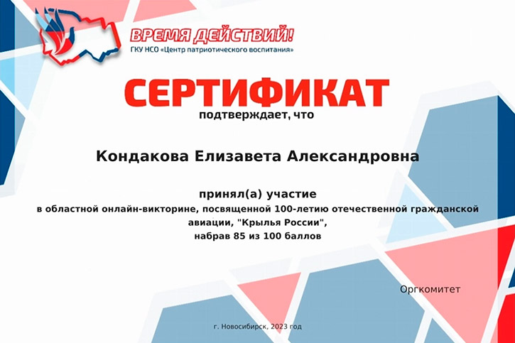 По итогам викторины все участники получают сертификат (в электронном виде) с указанием результата.