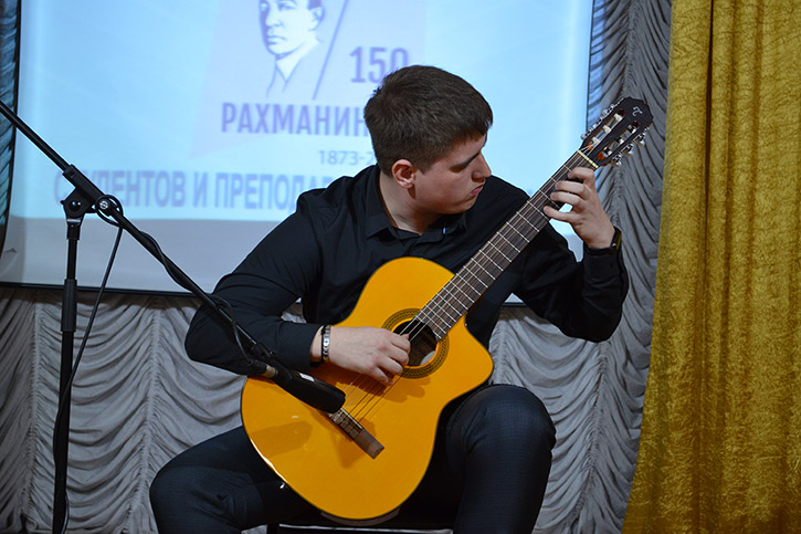 В концертную программу вошли фортепианные сочинения С.В.Рахманинова, прозвучавшие не только на фортепиано, но и в переложении для других инструментов - гитары, баяна, ансамбля народных инструментов.