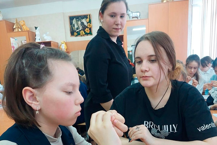 Обмен знаниями проходил в современной модели наставничества "студент - школьнику". Наставники познакомили ребят с различными видами ДПИ, оформив восхитительную выставку из своих творческих работ. Затем за каждым школьником методом случайного выбора был закреплён студент. После знакомства друг с другом "закипела" настоящая увлекательная работа.