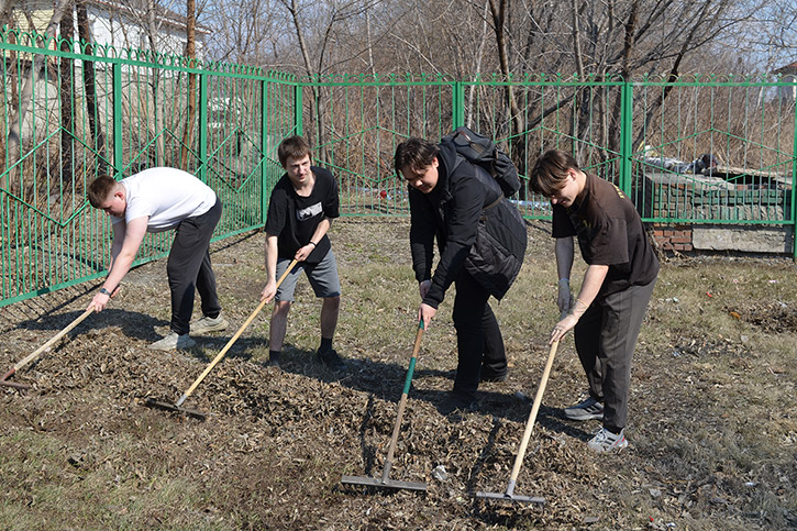 25, 28 апреля, в рамках традиционной акции "Дни чистоты" сотрудники, преподаватели и студенты всех учебных групп провели субботник, в ходе которого была проведена уборка прилегающей к зданию колледжа и общежития территории от остатков прошлогодней травы и листьев, покрасили бордюры.