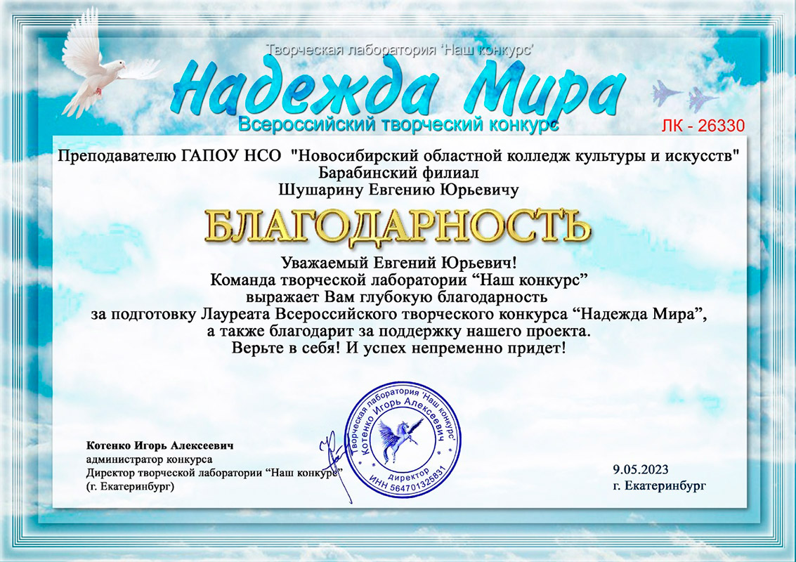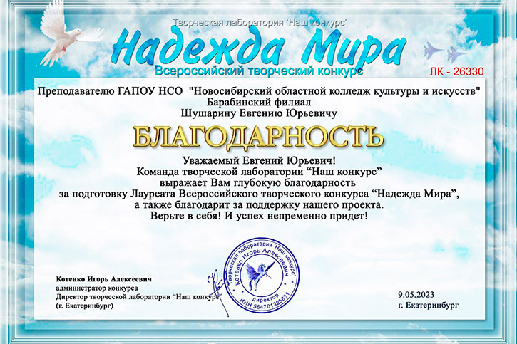 Мы поздравляем победителей конкурса и руководителя Евгения Юрьевича Шушарина, желаем им творческих успехов и новых свершений.