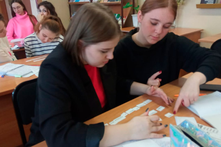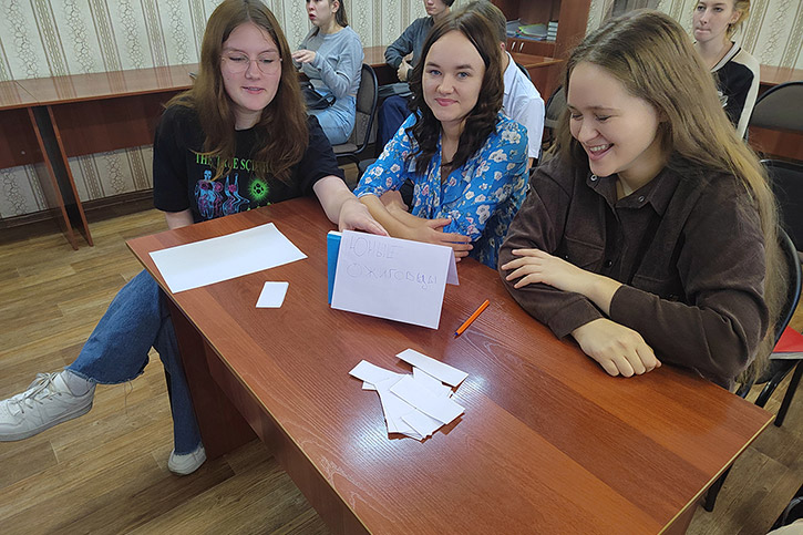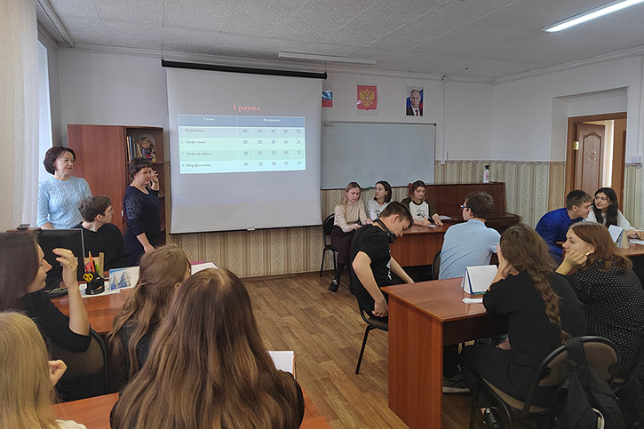 Следующим этапом проведения Дня стала интерактивная игра "Своя игра" "Знатоки русского языка". Студенты вспомнили такие разделы науки о языке, как: фонетика, орфография, орфоэпия, морфология. Больше всего учащимся понравились задания 2 раунда: "Великие имена России" и "Названия произведения по смайлам". Стоит отметить, что участники игры отвечали на довольно сложные вопросы. Подготовка к ответу требовала эрудиции, смекалки и логического мышления. В упорной борьбе победу одержала команда студентов "Сольное и хоровое народное пение". Студенты показали хорошие знания, умение работать в группе, проявили гибкость ума и находчивость. Несмотря на результат, все ребята получили удовольствие от игры и общения.