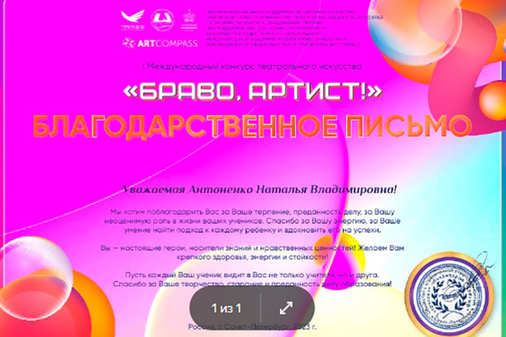 Режиссер-постановщик-преподаватель специальности "Социально-культурная деятельность" - Антоненко Н.В.