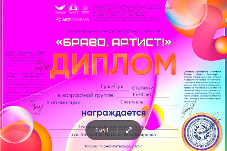 Поздравляем с победой в нелёгкой борьбе. Пусть этот конкурс станет ещё одним доказательством Ваших талантов и способностей, пусть в жизни специальности СКД ждёт ещё много таких участий и побед, пусть для Вас и Ваших преподавателей каждый день дарит верный стимул и высокое стремление. Пьеса-сказка в двух действиях "Никита - добрый человек", по мотивам сказки Полины Жиглинской и Владимира Илюхова.