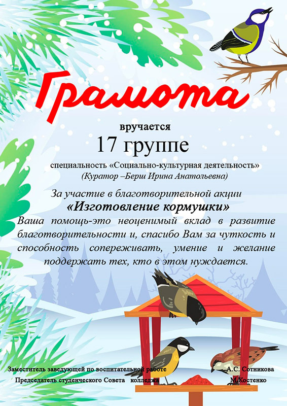 1 декабря на территории колледжа и общежития устроили настоящий праздник для пернатых!