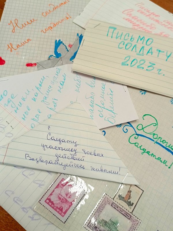 У некоторых из студентов отцы, братья, мужья, друзья сейчас в зоне боевых действий, многие ушли по мобилизации, а так же и добровольцами. В своих письмах ребята благодарили бойцов за мужество и отвагу.