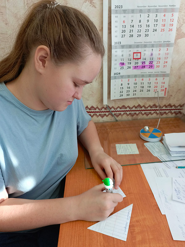 "Я впервые в жизни писала рукописное письмо. Оно сильно отличается от электронного. Здесь я вкладывала душу. Я пожелала бойцам удачи, написала, чтобы они скорее возвращались домой с победой, мы их очень ждем. Мне кажется, что нашим солдатам сейчас нужны такие тёплые слова", - поясняет студентка НХТ-19 гр. Чаплыгина Анастасия.