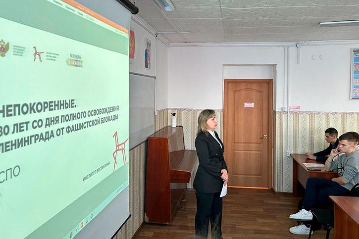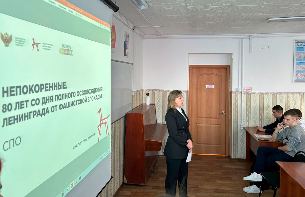 22 января в рамках Разговоров о важном прошёл открытый классный час по теме: "Непокоренные" (80 лет со дня полного освобождения от блокады Ленинграда) для студентов колледжа в форме дискуссии.