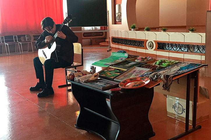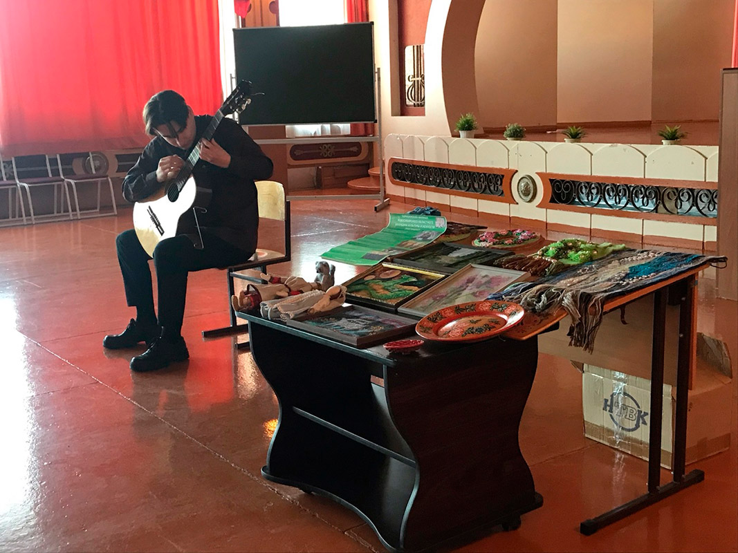 Студенты филиала подготовили концертные номера и продемонстрировали свое владение игры на гитаре, исполнитель Илья Леоненко (44 гр.) преподаватель - Шеломенцев А.П., фольклорному творчеству порадовала Анастасия Галушкина (49 гр.), руководитель Тормоза Н.С. и Синчуков С.В., возможность насладиться народной песней продемонстрировал Фиськов Александр (31 гр.), руководитель Сотников С.Е.