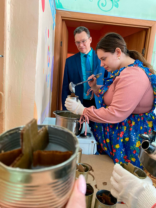 У свечи можно погреться, подсушить обувь, разогреть еду. Изготовленные студентами свечи в ближайшее время будут отправлены солдатам в зону СВО.