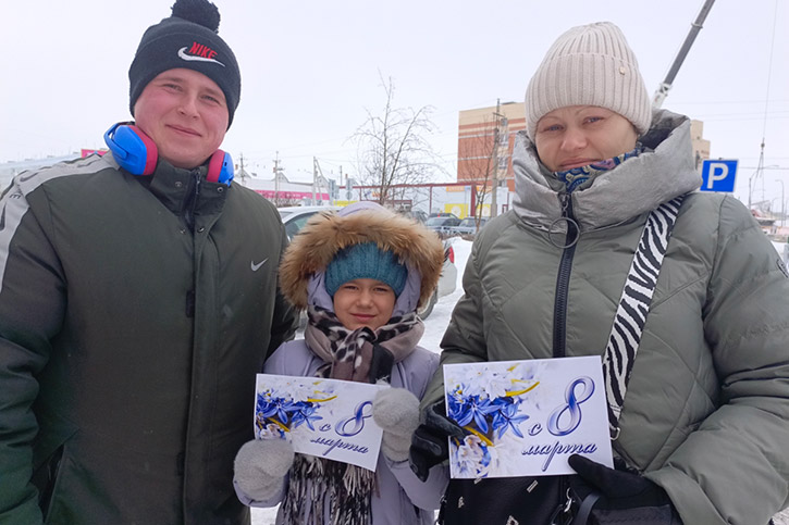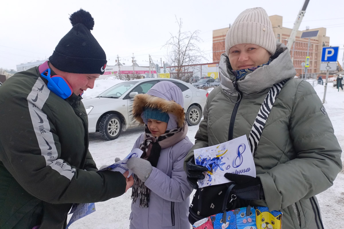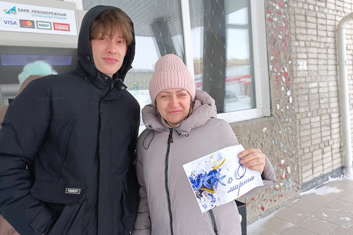 В преддверии Международного женского дня Администрация города Барабинска и студенты - волонтеры Барабинского филиала "НОККиИ" поздравили прекрасный женский пол с праздником и вручили им открытки.