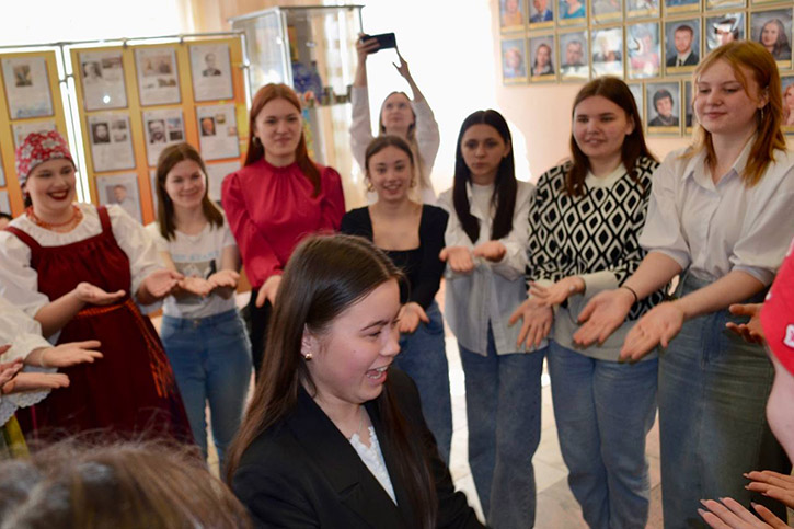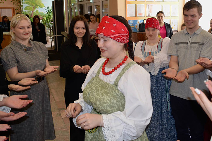 Студенты 2 курса под руководством С.М.Мисьянкиной провели фольклорно-игровую программу, в ходе которой познакомили всех собравшихся с русскими народными играми и танцами.