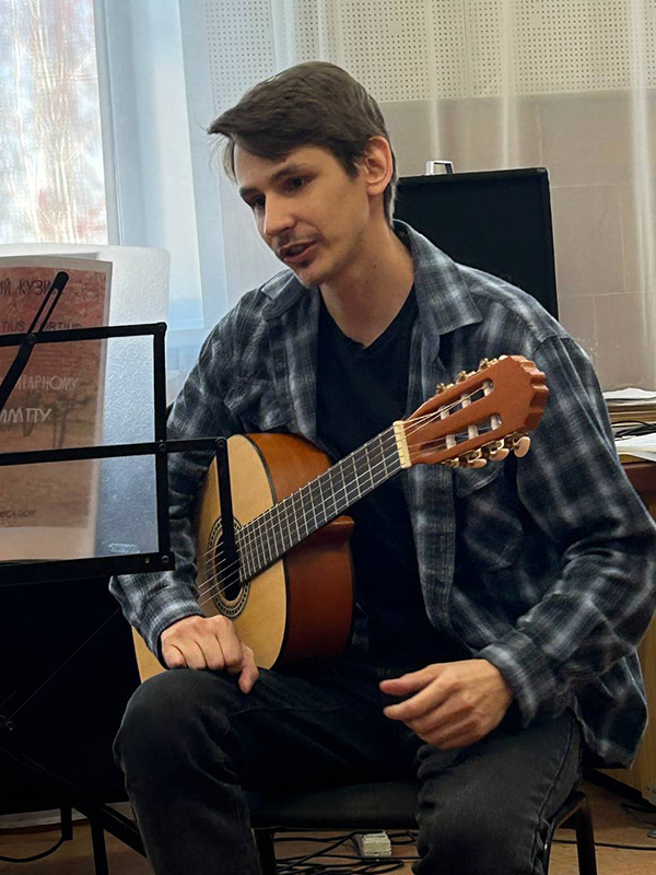 Преподаватель А.П.Шеломенцев провел для всех желающих открытый урок по теме "Особенности исполнения мелизмов при игре на гитаре", где поделился секретами исполнения этих мелодических фигур, служащих украшениями отдельных звуков мелодии.