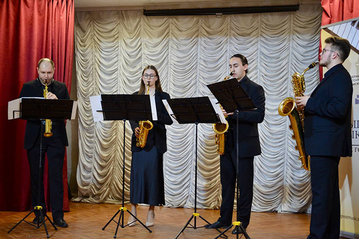 В завершении дня квартет саксофонистов Новосибирской государственной консерватории имени М.И. Глинки в составе Владимира Михно (сопрано-саксофон), Кристины Игнатенко (альт-саксофон), Тимура Апанасик (тенор-саксофон), Вячеслава Дмитриева (баритон-саксофон) порадовал зрителей концертной программой "Мелодия детства", в которой прозвучала музыка из известных советских мультоильмов в переложении для квартета саксофонов.