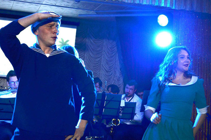 В программе вечера в исполнении учебного эстрадно-духового оркестра (руководитель - А.В.Гончаров) прозвучали инструментальные и вокально-инструментальные композиции из репертуаров американских диксилендовых оркестров, а также любимые советские мелодии в джазовых аранжировках.