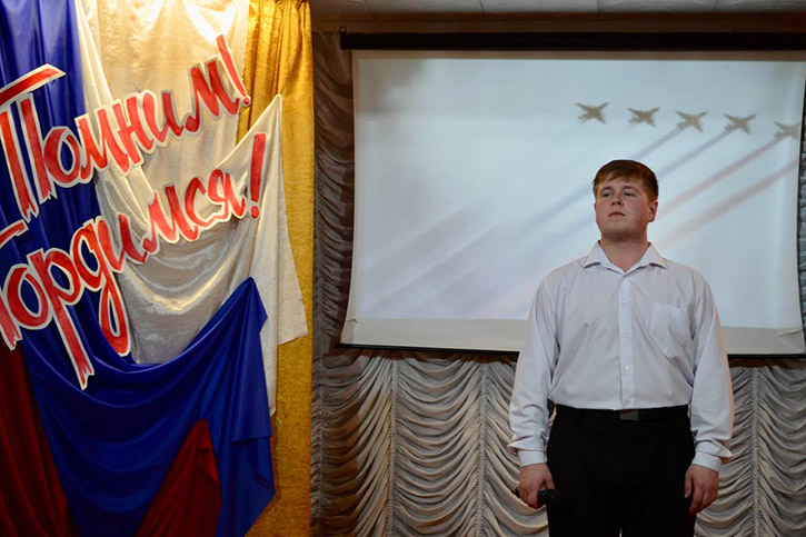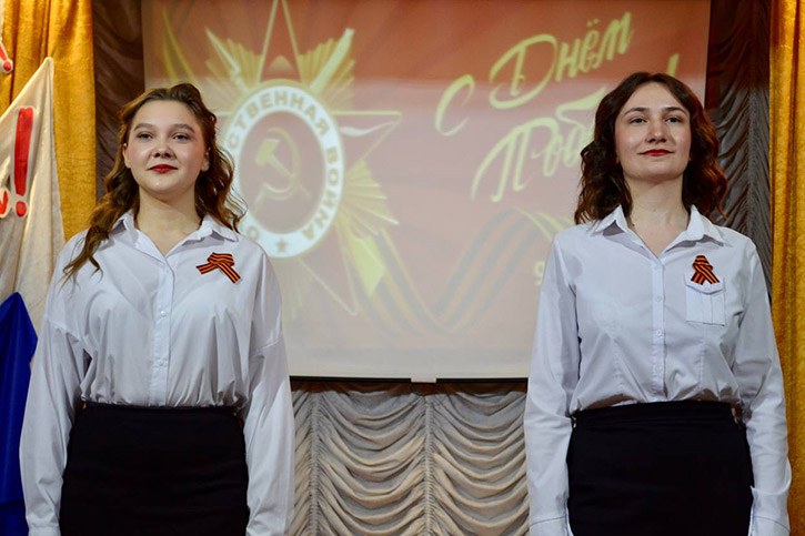 Во время концерта на экране шла специально подготовленная видеохроника, вобравшая в себя военные фотографии и видеоархивы. Студенты и преподаватели смотрели за происходящим, затаив дыхание и наполняясь любовью к Родине, благодарностью к тем, кто отстоял свободу нашей страны, а также чувством единения перед новыми угрозами.