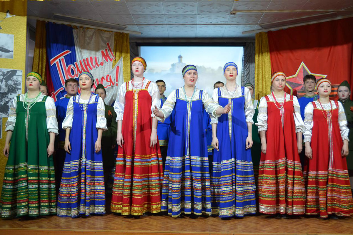 Завершилась программа главной песней праздника - "День Победы" в исполнении преподавателя С.Е.Сотникова и учебного хора "Сибирские узоры".
