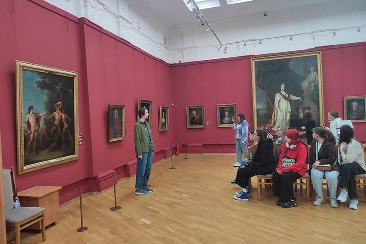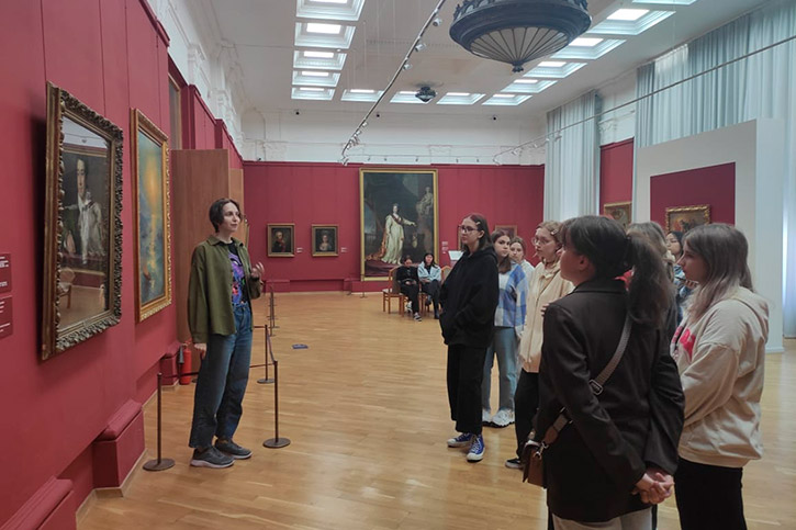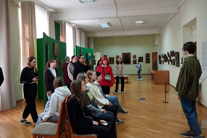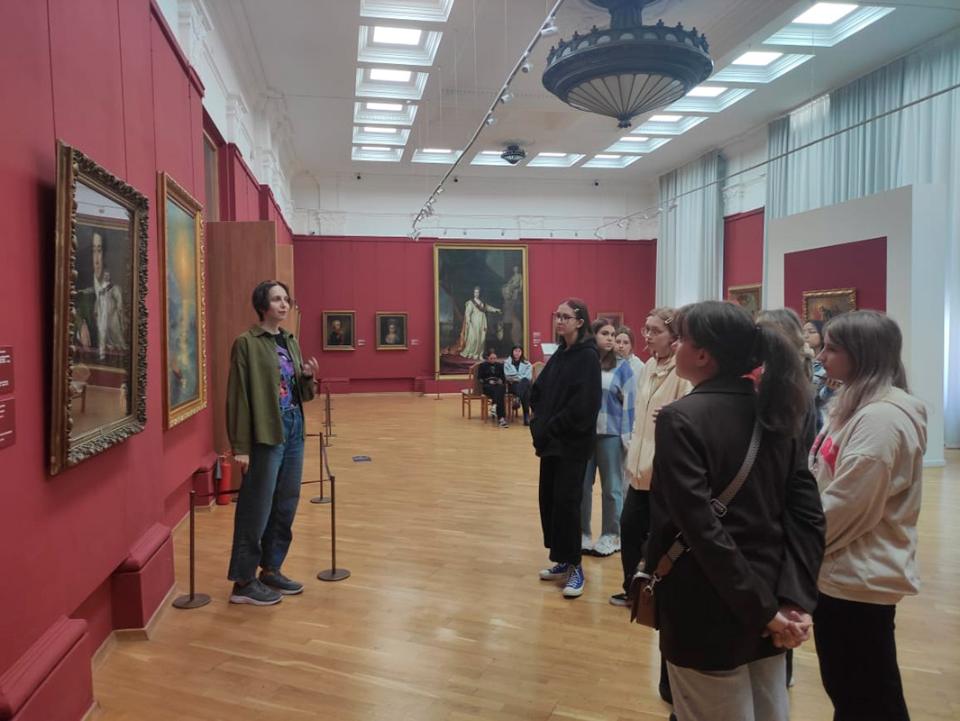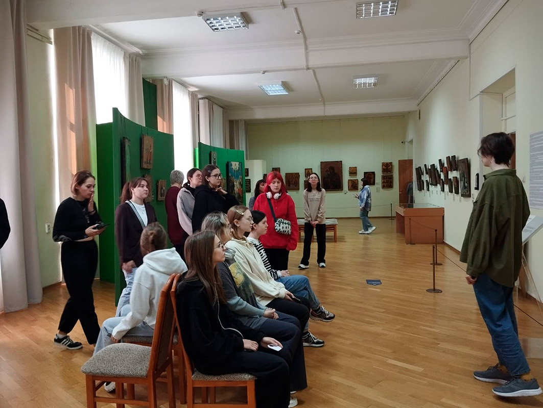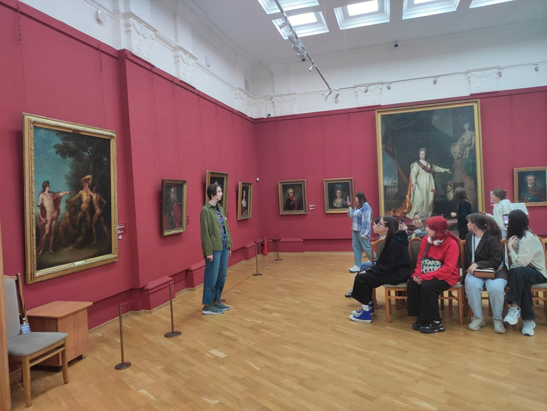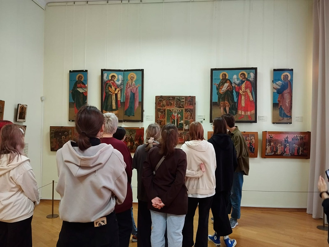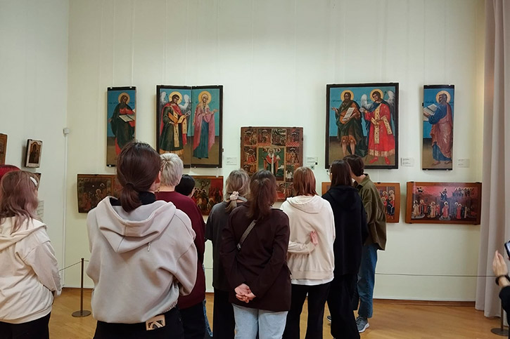 Экскурсия началась с экспозиции в зале древнерусской живописи XVI-XX веков. Экскурсовод познакомила с иконой как видом изобразительного искусства, ее особым языком и технологией создания. Далее рассказала о лучших экспозициях музея работ Д.Г.Левицкого, В.А.Тропинина, И.М.Прянишникова, И.Е.Репина, В.И.Сурикова, А.Я.Головина, З.Е.Серебряковой, И.И.Машкова, Р.Р.Фалька, П.П.Кончаловского, К.Ф.Юона, Н.К.Рериха.