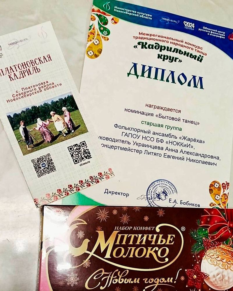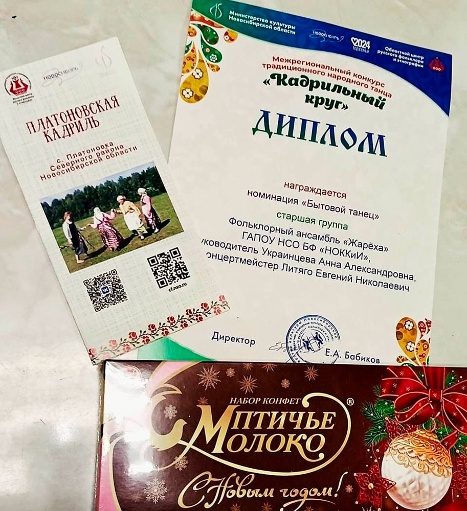 23 ноября фольклорный ансамбль "Жарёха" специальности "Народное художественное творчество" (руководитель Украинцева А.А., концертмейстер Литяго Е.Н.) стал участником Межрегионального конкурса традиционного народного танца "Кадрильный круг".