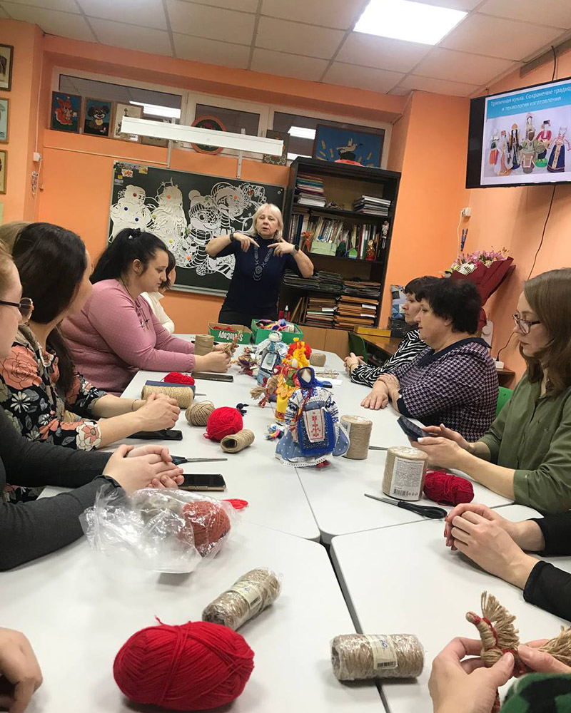Одним из направлений работы стала организация профессиональных мастер-классов для специалистов сферы культуры. Мастерством поделилась преподаватель специальности "Декоративно-прикладное искусство и народные промыслы" В.А.Балябкина. Вера Анатольевна провела мастер-класс по созданию куклы-оберега "Солнечный конь". Участники получили новые знания о методике изготовления кукол-оберегов и собственноручно создали древний оберег на удачу, успех, богатство и процветание.