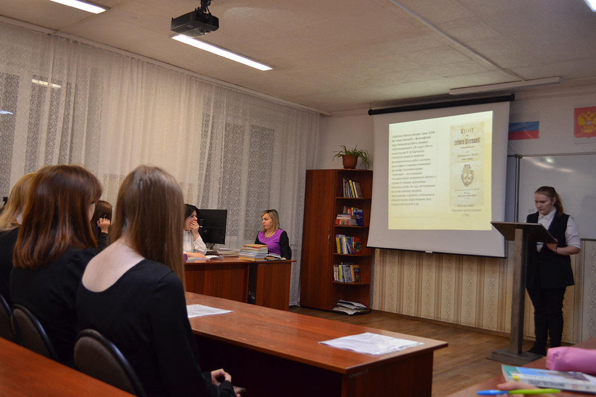 Студенты колледжа приняли участие в заседании круглого стола, посвященному юбилею И.Канта. Библиотека колледжа подготовила выставку, посвящённую великому мыслителю.