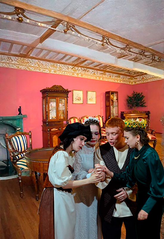 Спектакль, поставленный студентами 3 курса специальности "Социально-культурная деятельность" под руководством Н.В.Антоненко, представляет собой романтическую историю тесно переплетённую с атмосферой таинственной гостиницы, населённой необычными героями.