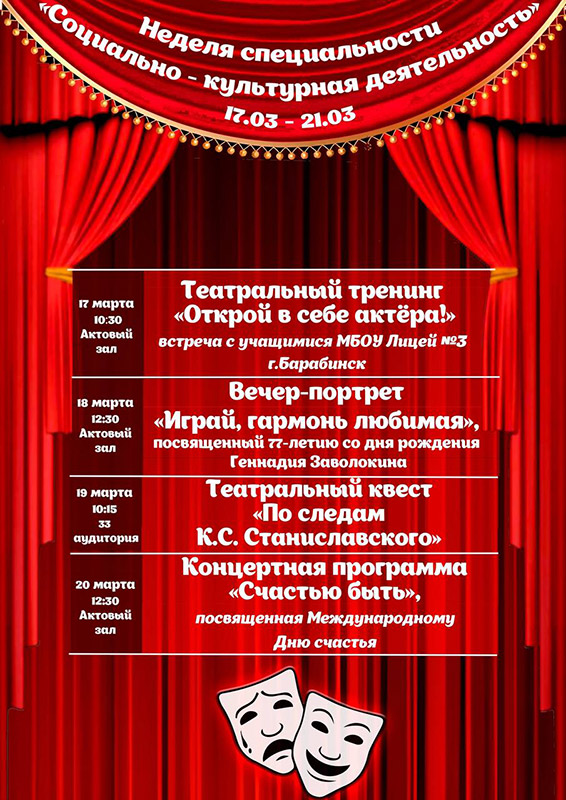 НЕДЕЛЯ СПЕЦИАЛЬНОСТИ "СОЦИАЛЬНО-КУЛЬТУРНАЯ ДЕЯТЕЛЬНОСТЬ"