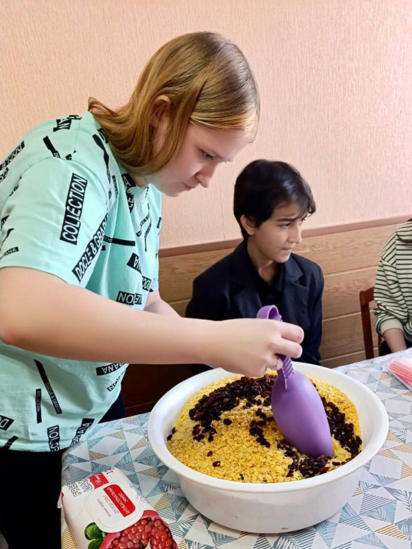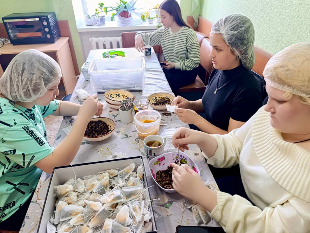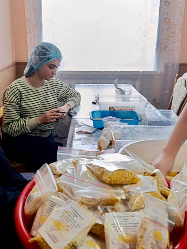 Знакомство с движением "Домой!" началось с экскурсии по волонтерскому дому. Студенты увидели, как организованы рабочие зоны, вдохновились масштабом деятельности и самоотверженностью волонтеров. Затем они сами включились в работу: освоили технологию приготовления молочных каш быстрого приготовления, научились фасовать витаминный чай, работать с парафином и даже нарезать спанбонд электрическим ножом!