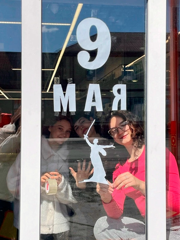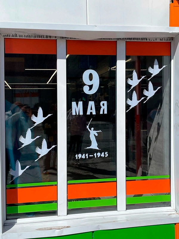 На окнах появились изображения цветов, вечного огня, голубей мира и многих других символов, связанных с Победой. Это стало своеобразной данью уважения и благодарности тем, кто сражался за нашу свободу и мирное небо над головой.