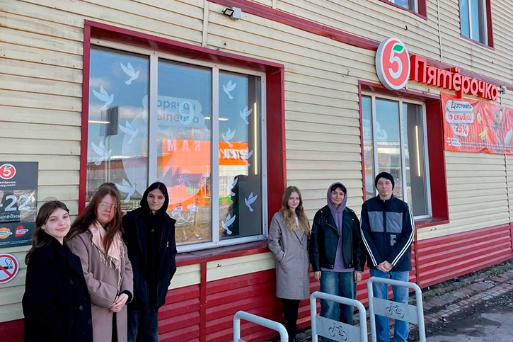 Студенты колледжа украсили окна супермаркетов "Пятёрочка" и "Монетка" тематическими вырезанными символами Победы. Каждый элемент наполнен глубоким смыслом.