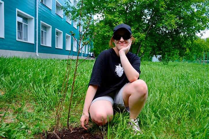 На территории общежития БФ НОККиИ появились молодые яблони, которые, как надеются выпускники, будут расти и крепнуть вместе с их профессиональными успехами.