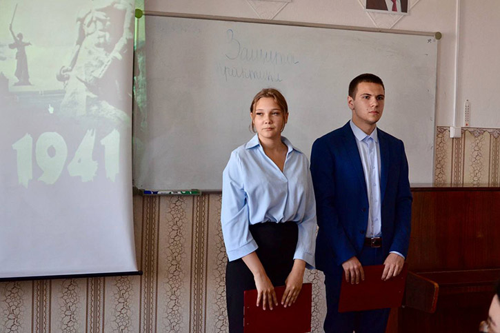 Накануне памятного дня в Барабинском филиале Новосибирского областного колледжа культуры и искусств (БФ НОККиИ) состоялся классный час, подготовленный студентами 2-го курса специальности "Социально-культурная деятельность" Дианой Борденковой и Сергеем Пономаренко. Под чутким руководством преподавателя истории и обществознания Ирины Анатольевны Берш студенты провели для всех первокурсников глубокий и содержательный урок, посвящённый трагической дате начала Великой Отечественной войны.