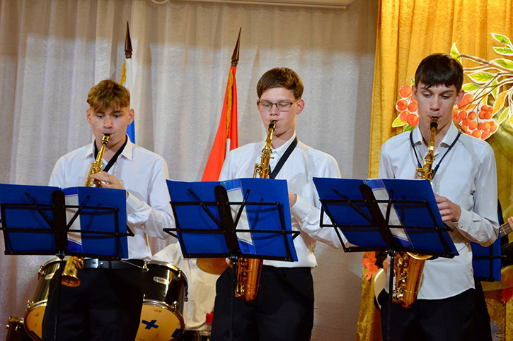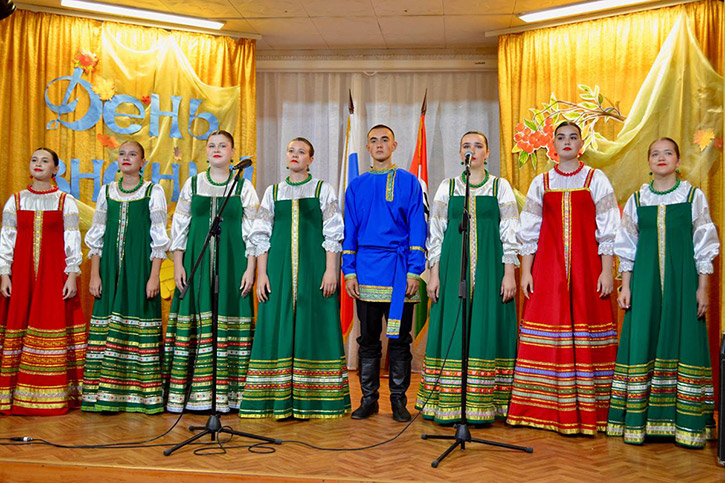 На протяжении праздника студенты радовали зрителей музыкальными подарками. Открыл программу Дэнис Буртелов с номером "Это наша Россия". Продолжили череду выступлений студент 1-го курса специальности "Сольное и хоровое народное пение" Кирилл Капленко с проникновенной песней "Синяя вечность", вокальный ансамбль 3-го курса специальности "Сольное и хоровое народное пение" "Златозорье" с композицией "Ты моя Россия, песня в небе синем". С инструментальными наигрышами выступил фольклорно-инструментальный ансамбль специальности "Народное художественное творчество" - "Перегудица", а закрыл музыкальную часть квартет саксофонистов специальности "Педагогика дополнительного образования".