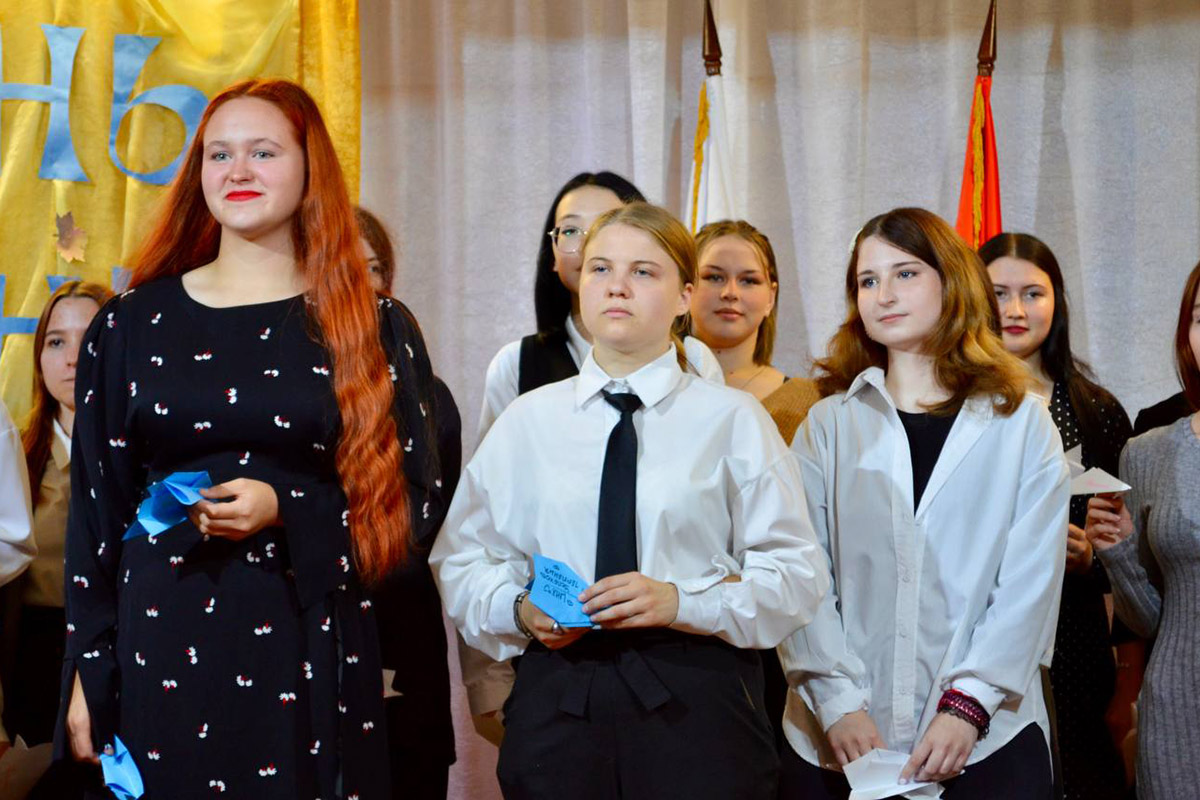 Под звуки торжественных фанфар ведущие поприветствовали студентов, преподавателей и почётных гостей, собравшихся, чтобы отметить начало нового учебного года.