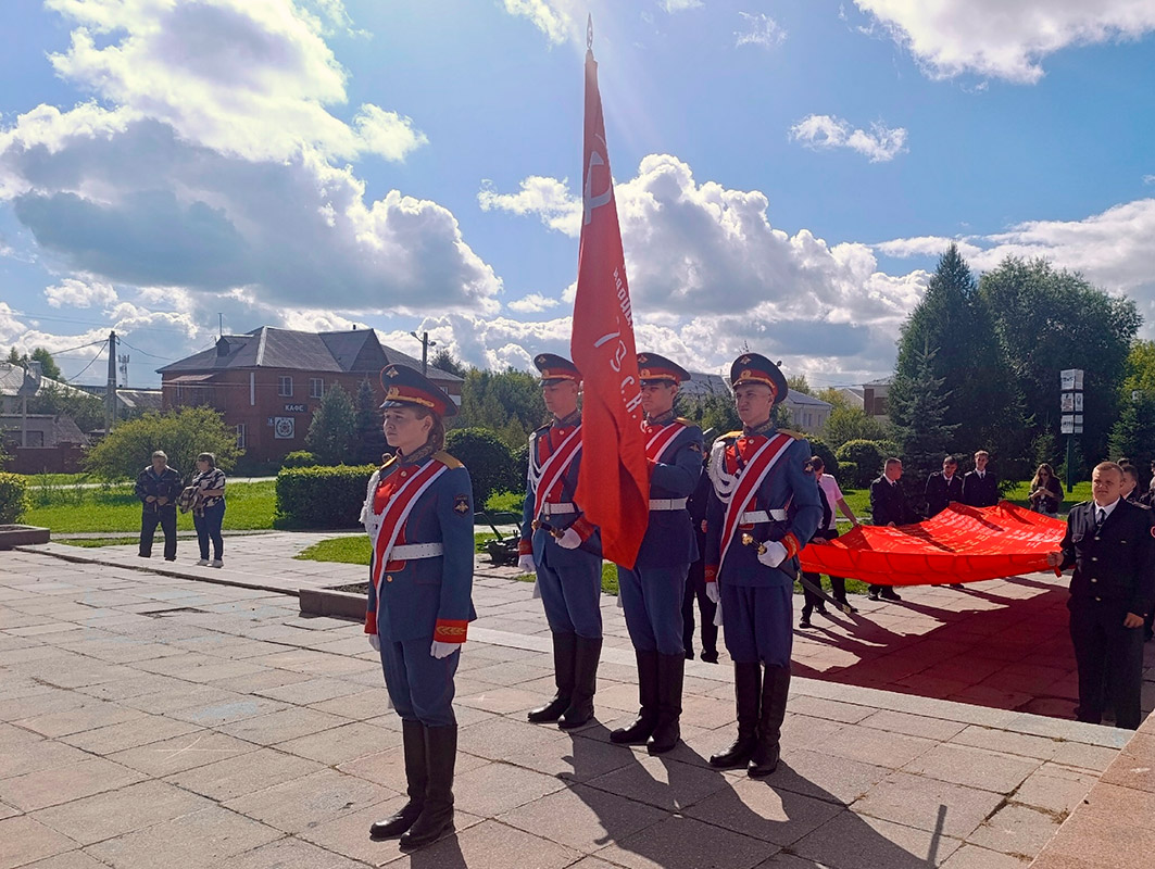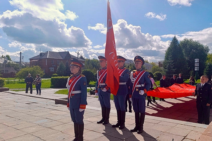 С пожеланиями мира и благополучия к барабинцам обратились куратор регионального этапа Всероссийской акции "Марш Знамени Победы", эксперт Центра патриотического воспитания Новосибирской области Роман Тощаков и участник специальной военной операции Кирилл Лелюх. Почетное право вынести копию Знамени Победы было предоставлено курсантам ВПК "Вымпел".