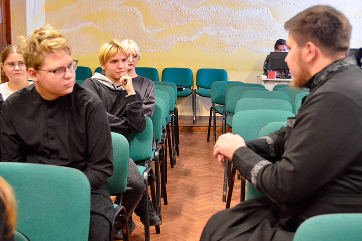 16 октября состоялась очередная встреча со студентами групп 40, 49, 14 и 19. Лекцию провел иерей Павел Говоров, который вместе со слушателями провел глубокий анализ различных аспектов понятия ценностей.