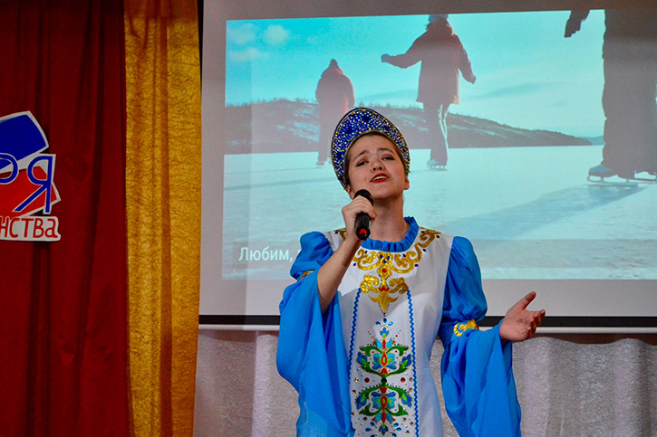 Студентка 3-го курса специальности "Сольное и хоровое народное пение" Анастасия Молодцова исполнила песню "Россия", воспев красоту и величие нашей страны. Её проникновенное исполнение стало настоящей кульминацией вечера.
