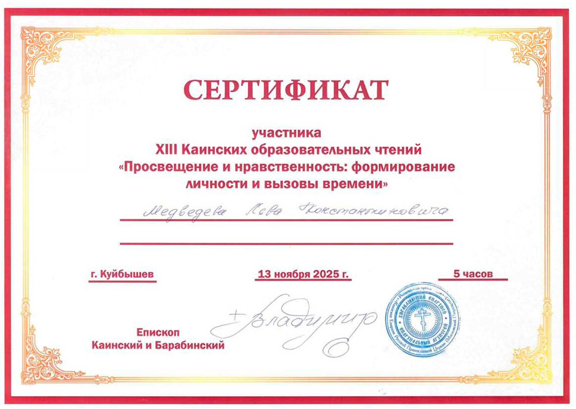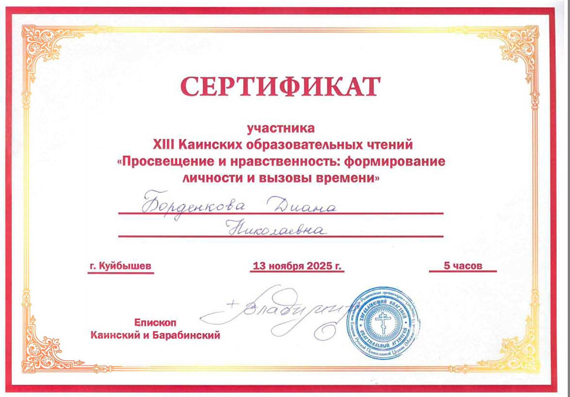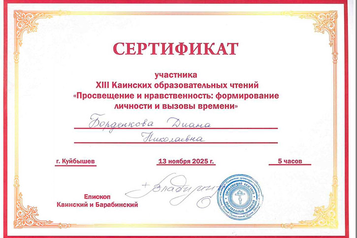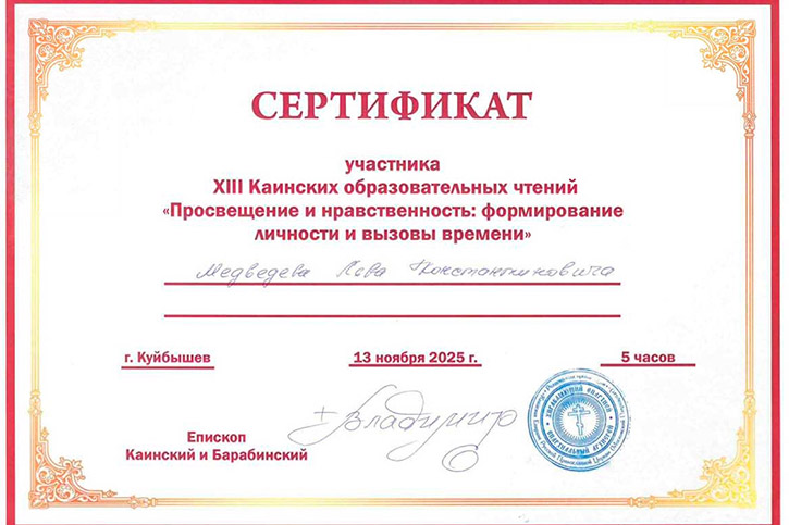 Студенты Барабинского филиала НОККиИ приняли участие в ХIII Каинских образовательных чтениях "Просвещение и нравственность: формирование личности и вызовы времени". Чтения проходят в рамках регионального этапа XXXIV Международных Рождественских Образовательных Чтений и посвящены Просвещению и нравственности, а также вызовам современности к формированию личности.