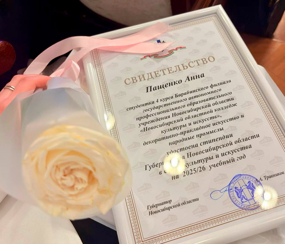 Студентка 4 курса специальности "Декоративно-прикладное искусство и народные промыслы" Анна Пащенко стала обладателем престижной стипендии Губернатора Новосибирской области!