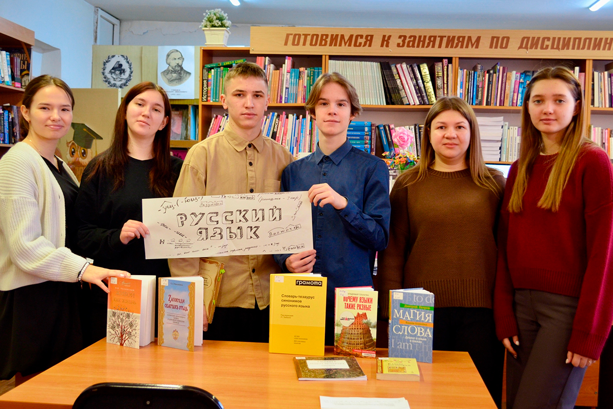 Анастасия Сергеевна Некрасова, библиотекарь Центральной районной библиотеки Барабинского района, рассказала студентам о этапах становления современного русского языка, начиная с древнерусского периода и заканчивая влиянием заимствований и новых тенденций.