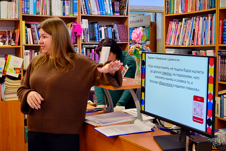 Особый интерес у студентов вызвала практическая часть. Студенты выполняли задания, связанные с работой со словарями и решали увлекательные задачи, требующие перевода слов и фраз со старославянского языка, что позволило им на практике ощутить разницу между древней и современной лексикой.