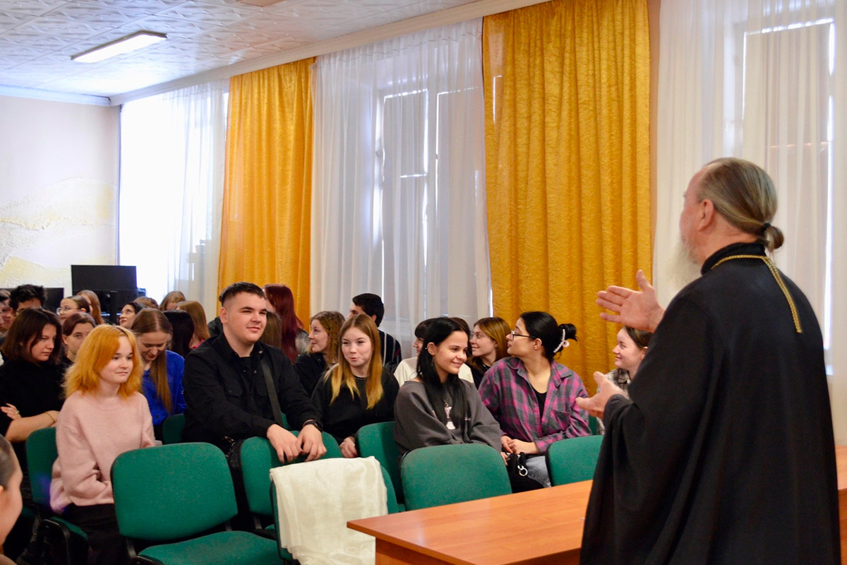 Встреча прошла в формате открытого диалога. Студенты активно включились в обсуждение и не стеснялись задавать личные вопросы, касающиеся повседневной жизни: о сквернословии, смысле Великого поста и о том, как сохранить духовные ориентиры в современном мире.