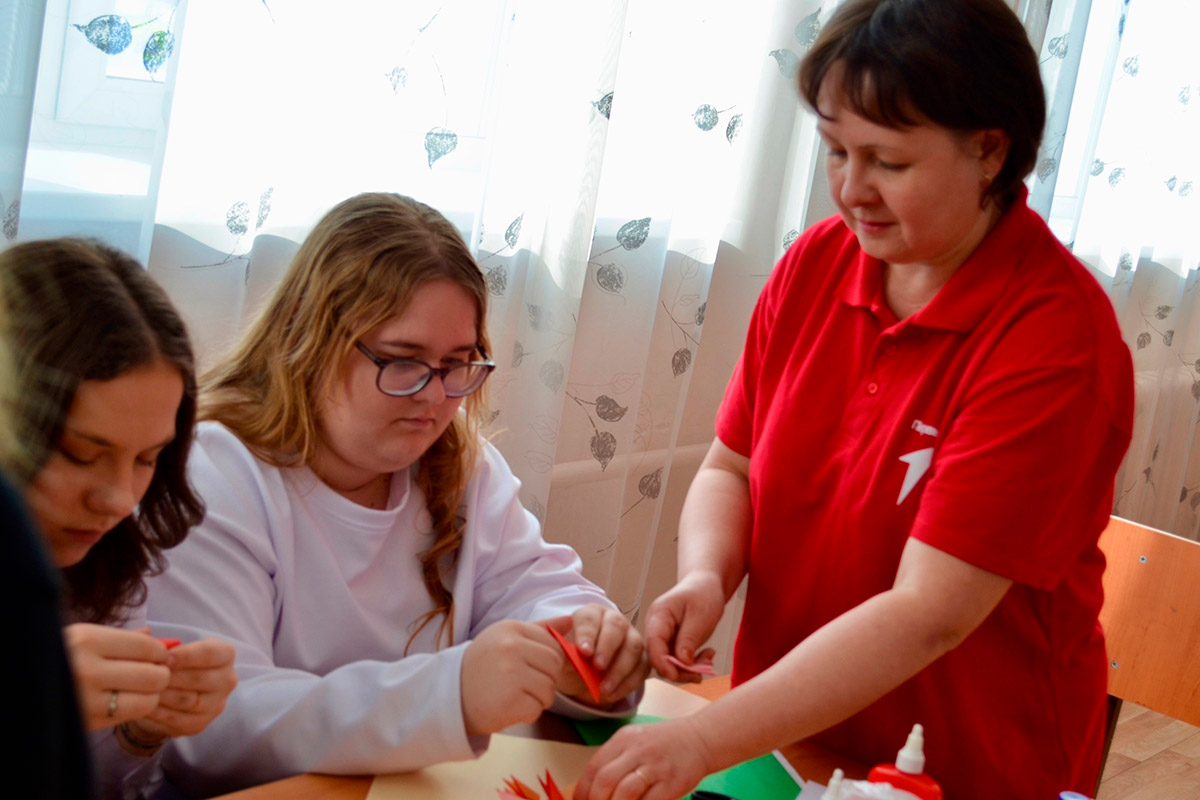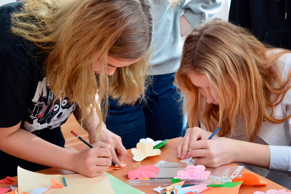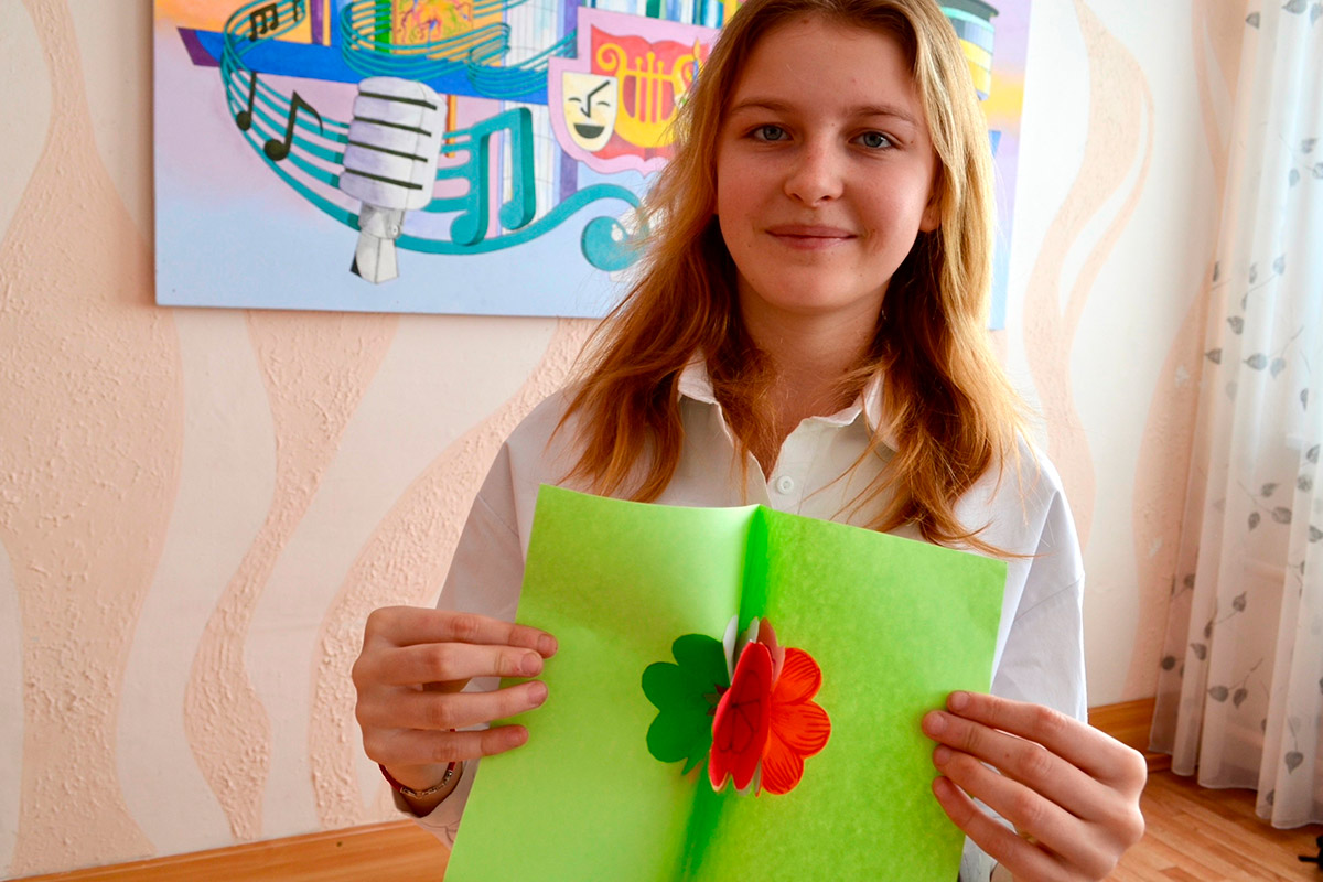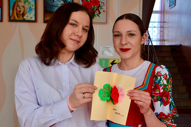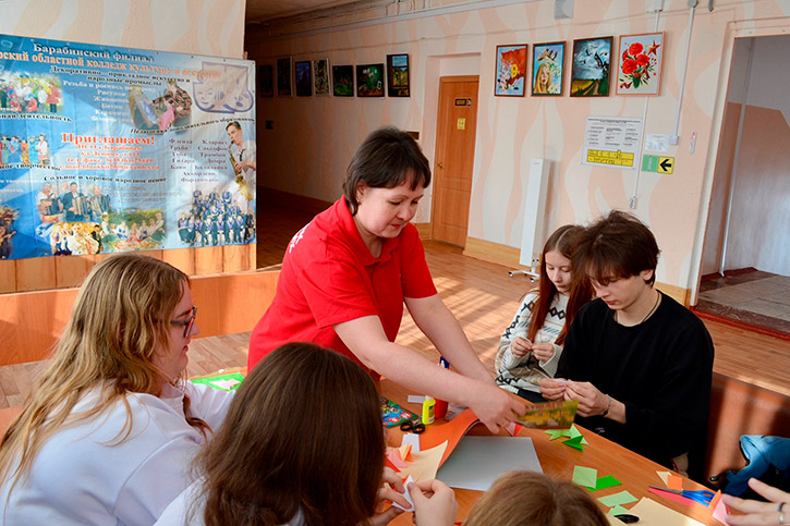 Занятие организовали и провели студентки 3-го курса специальности "Декоративно-прикладное искусство и народные промыслы". Под руководством советника директора по воспитанию В.М.Нафранович они поделились секретами создания 3D открытки.